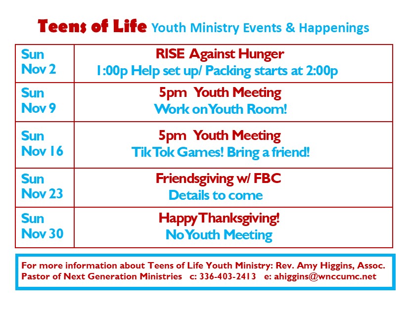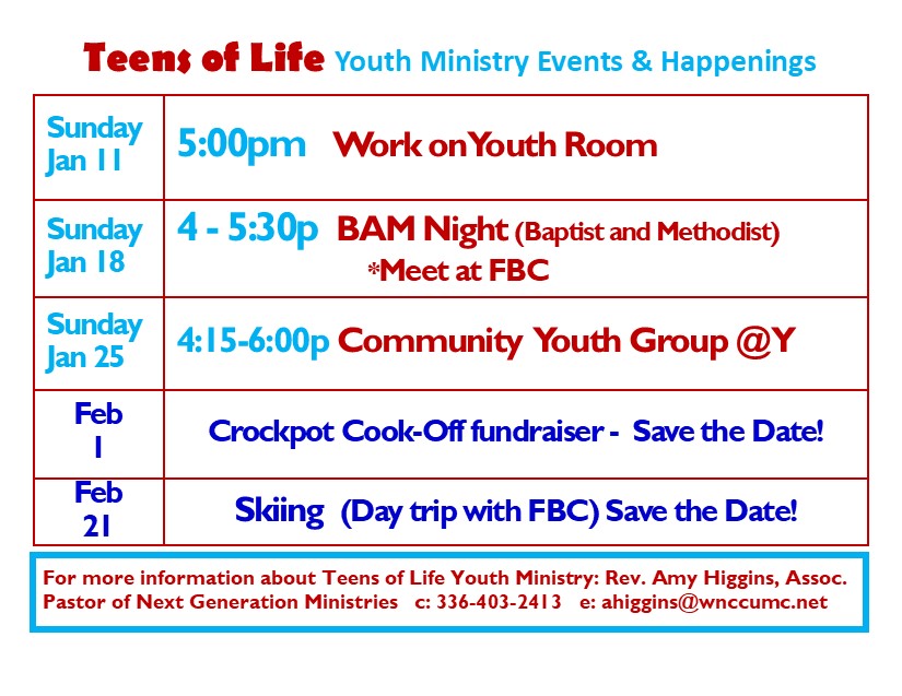 You may contact the church office (336) 248-2886 with questions or for more information.